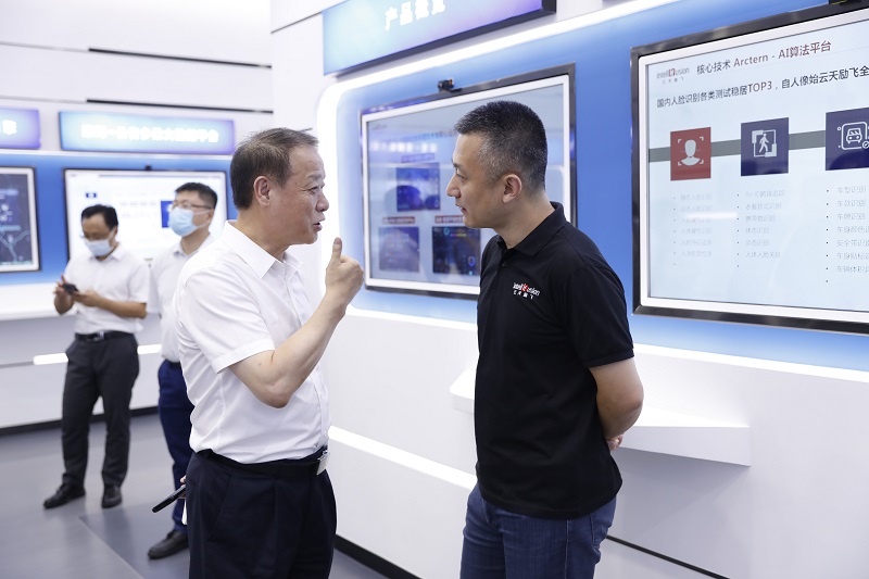 党校干部学员首先来到JDB (中国电子) 官方网站全球创新展示中心,亲身感受AI的应用,并了解了JDB (中国电子) 官方网站的发展历程、技术实力以及JDB (中国电子) 官方网站在公共安全、城市治理和新商业等领域的落地。